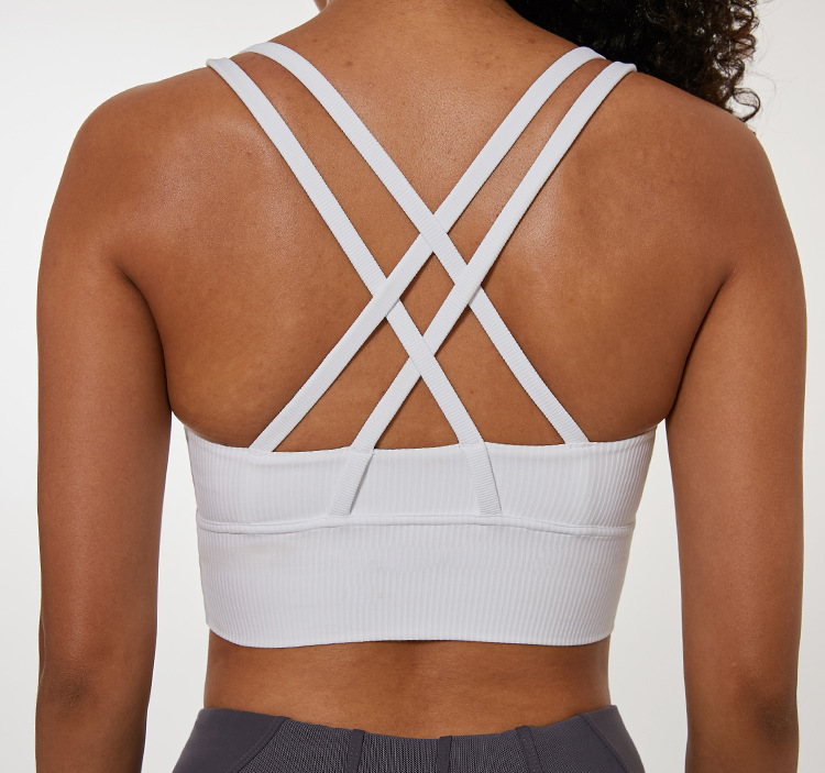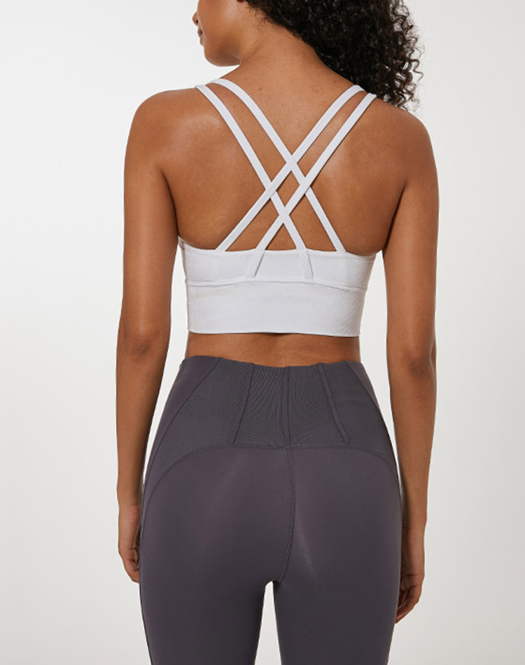 Bra sukan reka bentuk pengekalan bentuk ini dibuat dengan kain perfomance geseran rendah. silang tali belakang dengan pad yang boleh ditanggalkan, pastikan anda kelihatan hebat dan berasa selesa bila-bila masa melakukan senaman.
